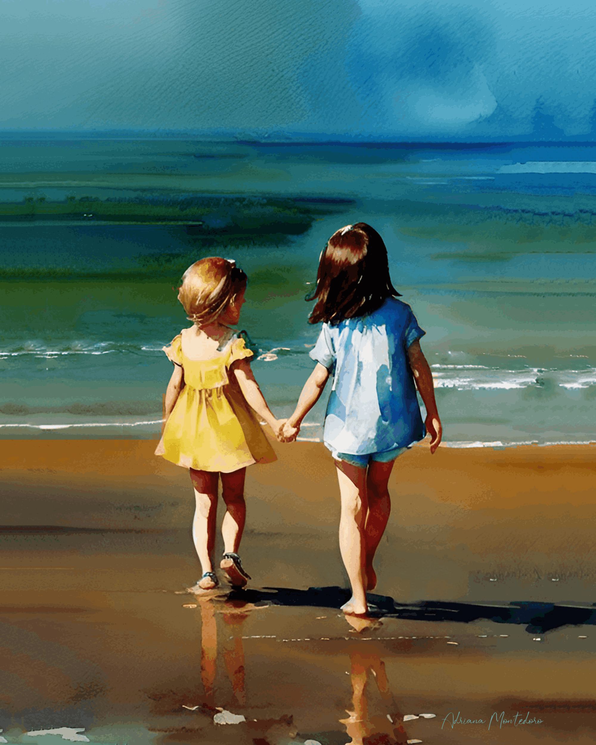 "Lovely art- beautiful, glowing colors and sweet images by Adriana. Purchased Dreams Adrift because it resembles my 2 daughters. Super fast delivery and excellent quality, so I'll be buying more to decorate a room".