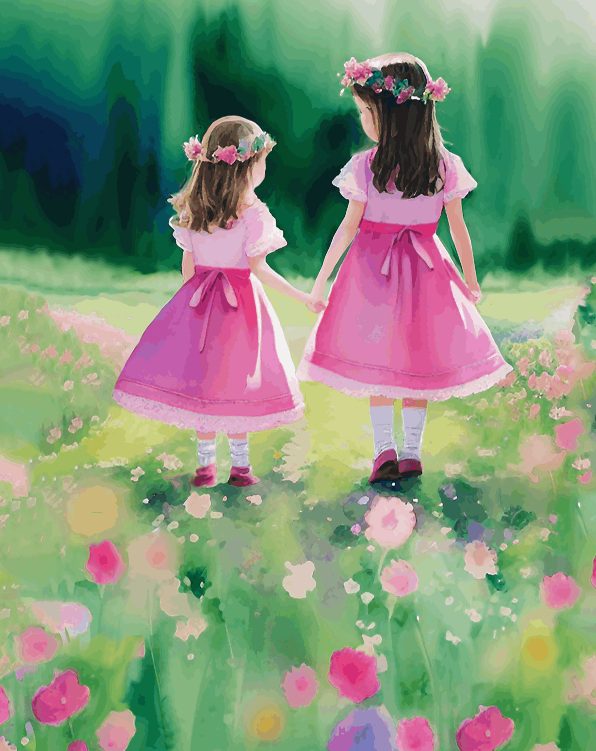 Make your selection even more special! Any print in the Girls Collection can be personalized to add a name or a meaningful message. For select pieces, you even have the option to customize details like hair color or skin tone, creating truly unique artwork that resonates with your family. These girls aren't just decor; they are heirloom-quality pieces that celebrate the fleeting beauty of girlhood.